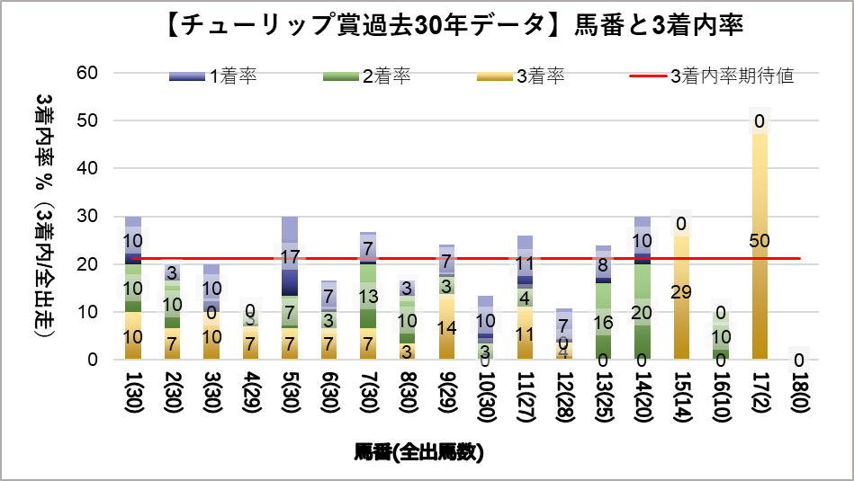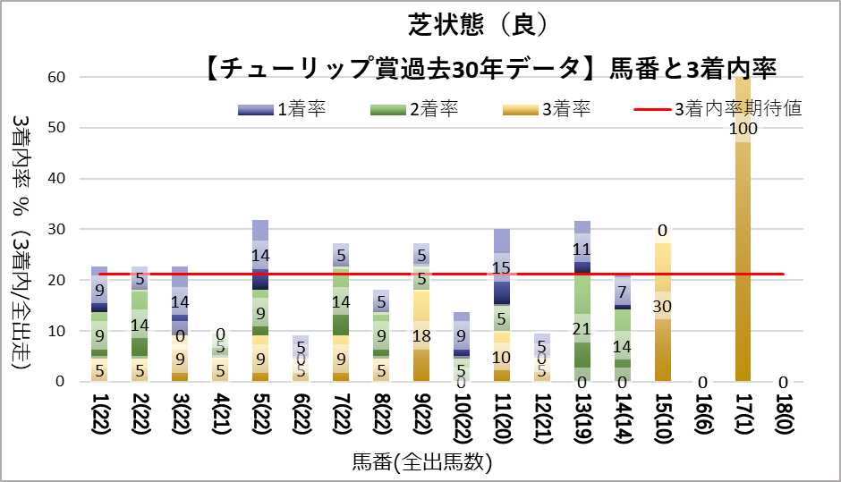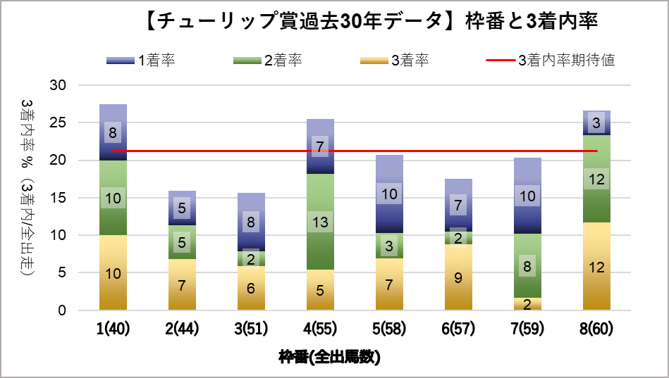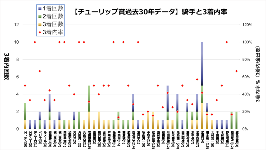 右軸:3着内率(赤い点を参照)