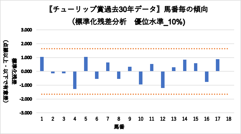 4, 16番が凡走傾向にあったが、統計的な有意差は認められなかった。