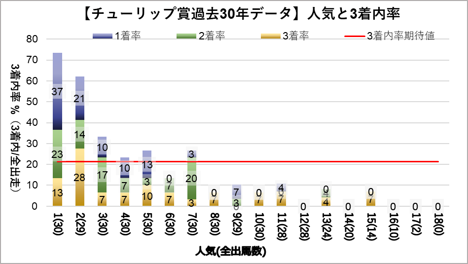 - 1人気(複勝率73.3%)、2人気(複勝率62.1%)