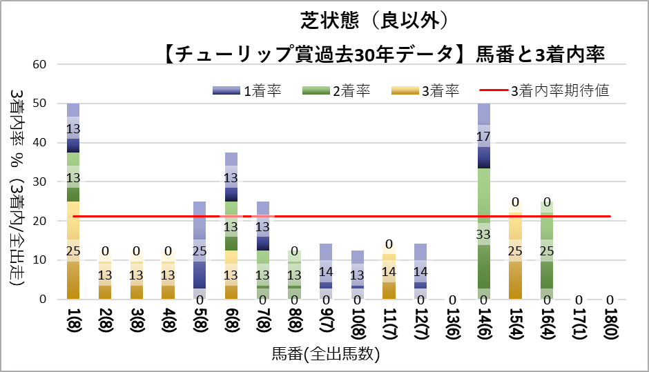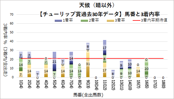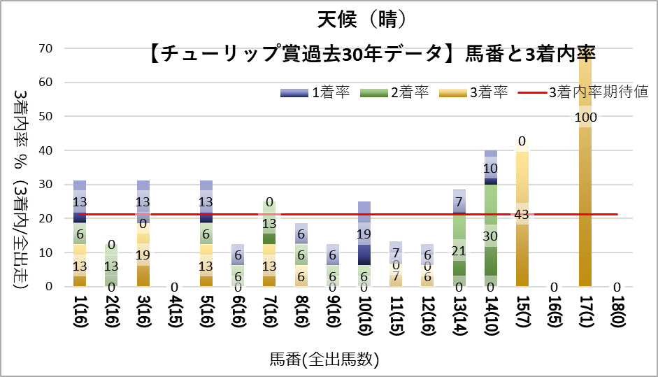 なお4, 16番においては過去一度も勝利がなく、晴のときは一度も馬券に絡んだことがない。